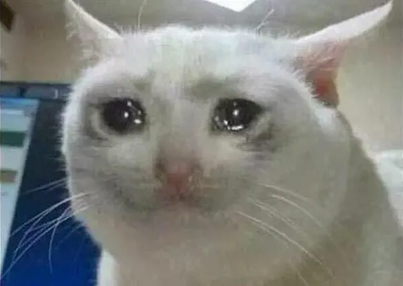 The Crying Cat is a heavily edited version of an already-sad cat photo, pushed to cartoonish extremes with oversized glassy eyes, flushed cheeks, and tears streaming freely. Some versions show the cat giving a thumbs up, which became the definitive form. absolute suffering paired with performative positivity. The format fills a specific niche that Sad Pepe doesn't: not just sadness, but the brave face you put on while falling apart.