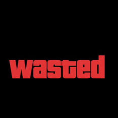 The animated GIF of GTA's "Wasted" death screen with the signature color drain and red text appearing. A faster, punchier failure reaction than the Dark Souls fade.
