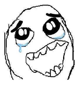 A rage comic face combining a massive open-mouth grin with streaming tears. Used for moments of overwhelming happiness, unexpected good news, or relief so profound it triggers weeping. The polar opposite of the typical rage comic suffering.