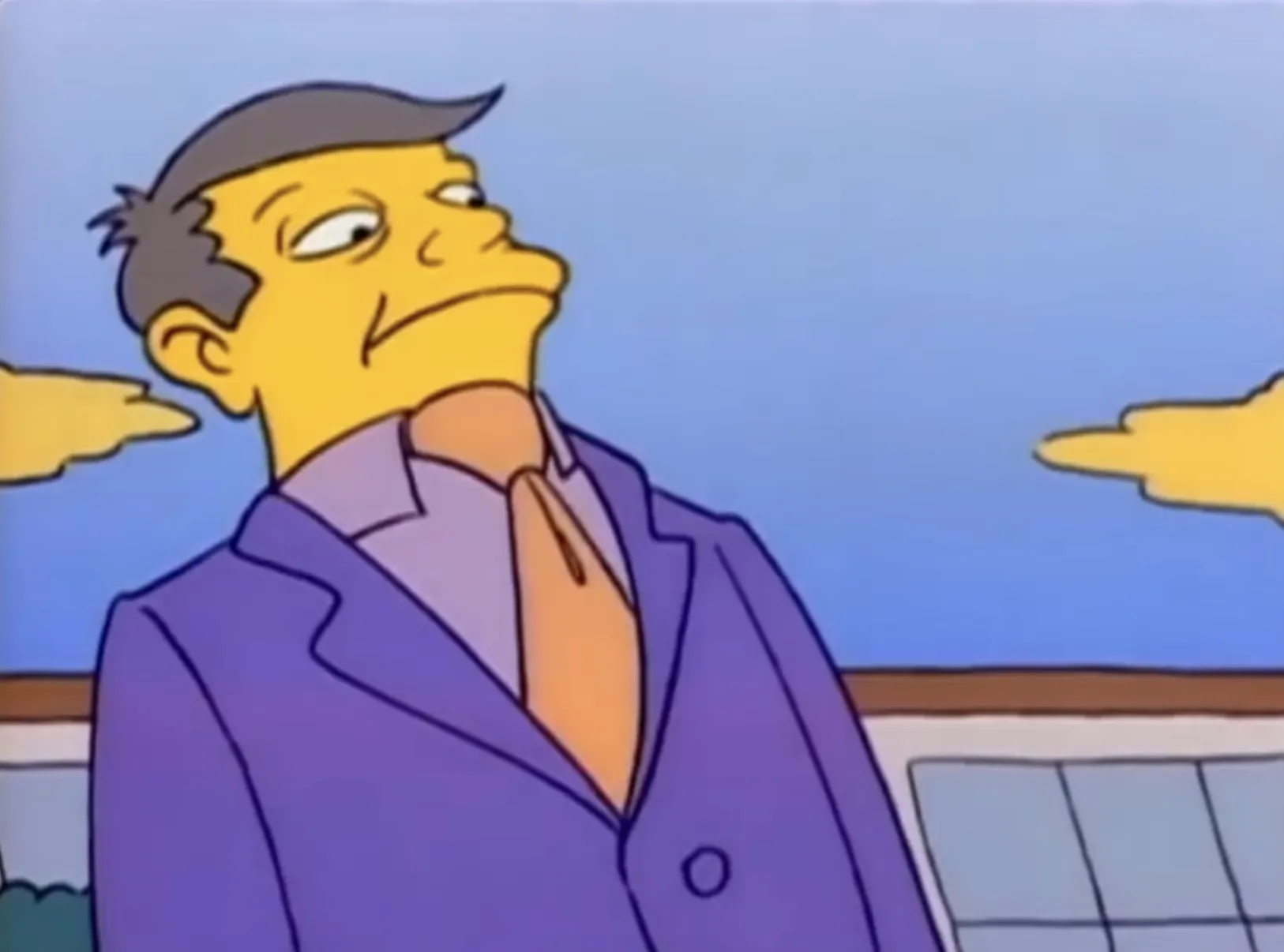 Principal Skinner stares down at you from above with pure condescension. One word in his expression: pathetic. For judging anyone who falls short of even the lowest bar.