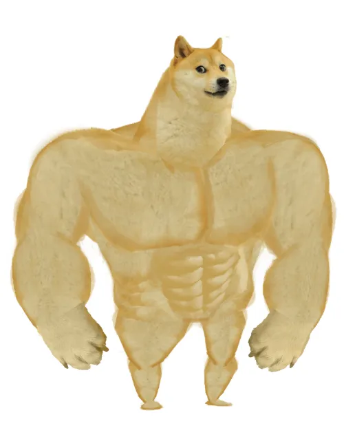 Swole Doge. The muscular, jacked version of the Shiba Inu, standing tall with an imposing physique. For when something or someone is unreasonably strong, tough, or impressive.