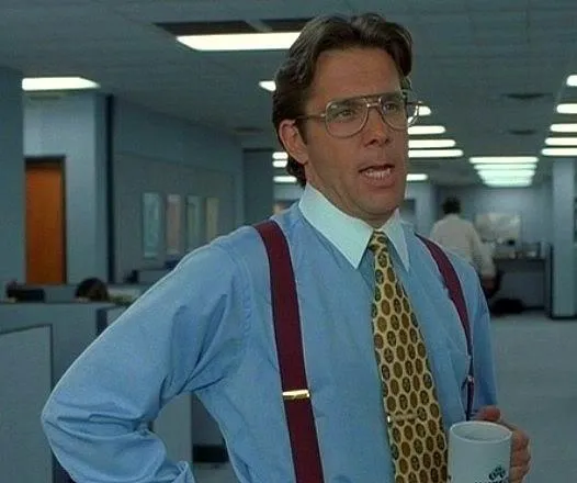 Bill Lumbergh, played by Gary Cole in Mike Judge's Office Space (1999), became the face of every soul-crushing middle manager who has ever existed. His signature move: appearing at your cubicle, coffee mug in hand, starting sentences with "Yeah" and ending them with "that would be great," while asking you to do something unreasonable with the tone of someone requesting a small favor. The still frame of Lumbergh holding his mug became a meme staple on early image macro sites and has never left circulation. The format works because his delivery is not angry or demanding. It is calm, pleasant, and completely indifferent to the fact that what he is asking will ruin your weekend. For a similar brand of workplace suffering delivered through a different lens, see First World Problems (privileged complaints). Disaster Girl (chaos you did not ask for) channels the same energy from the other side: she is the one making unreasonable demands of the universe.